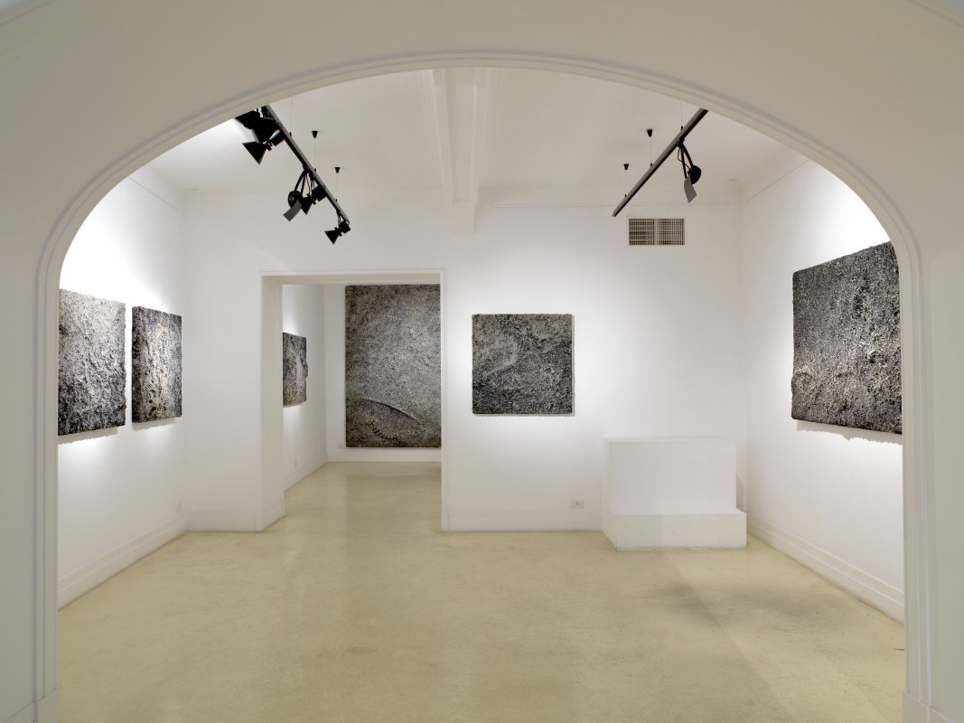 The focus of the exhibition points towards the chromatic qualities and the sculptural treatment of the materials, presenting us with a fresh series of works, which the artist has named Nocturnal Evaporations (2013), that draw their inspiration from the tradition of epic paintings and sculptures of battles dating from the Renaissance time as well as previous and subsequent historical periods.