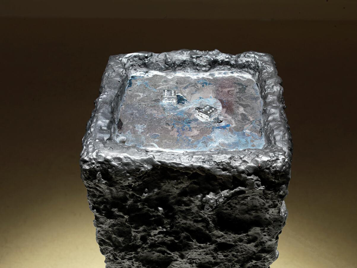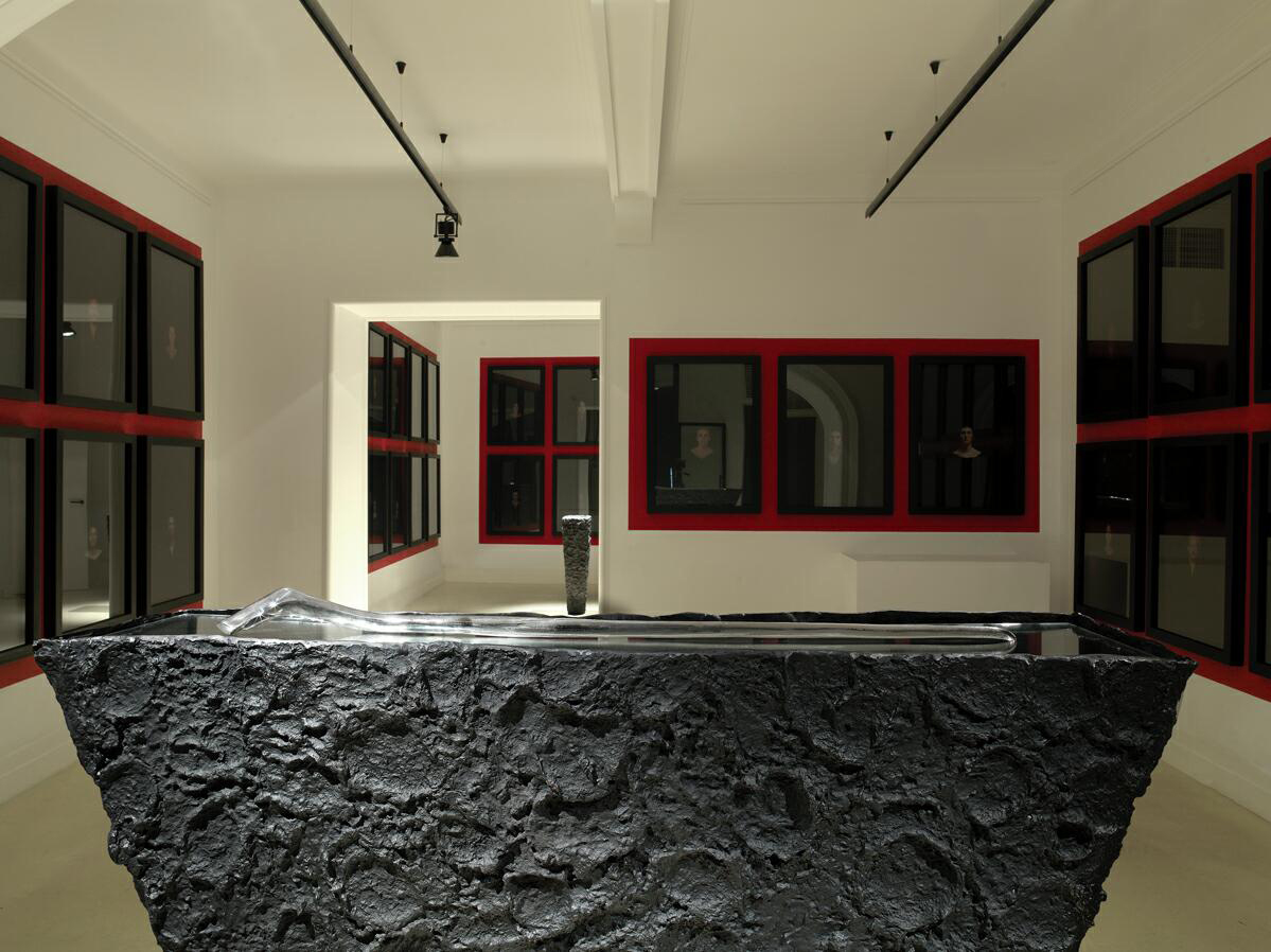 The title of that new expositive episode offered by Bizhan Bassiri together with its work staged in the space of GALLERJA in Via della Lupa in Rome, evokes in different ways the hermetic messenger divinity amongst the gods. This is not only for the presence in one of the work both of the ineffable mineral and of the reptile mythically coiled to the caduceus of the God Mercury, but above all for the disquieting portrait gallery that he wanted to be as “bystander” to the emblematic sculpture set in the middle of the space. .